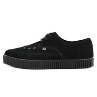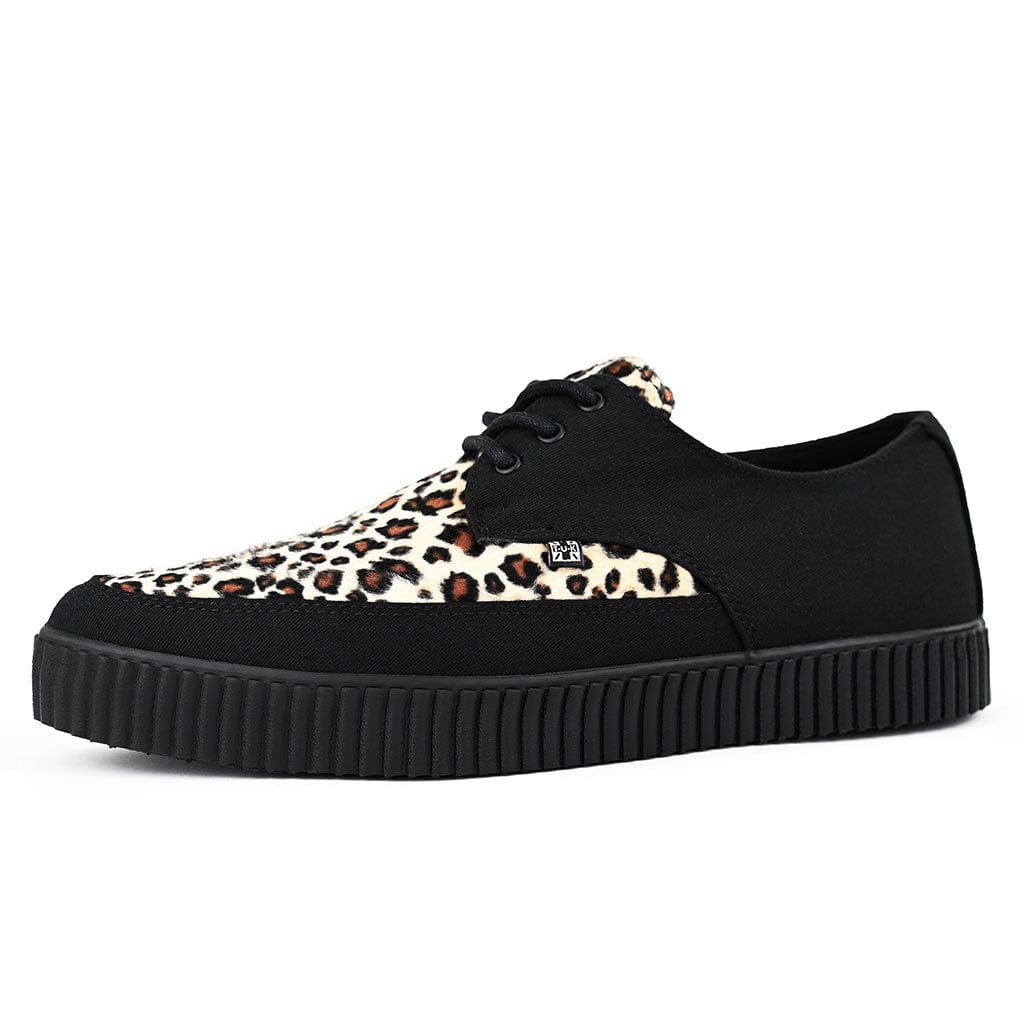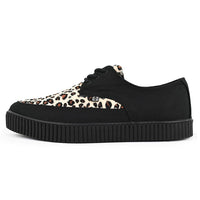 Vegan black and leopard print Pointed Sneaker Creeper. Ribbed sole with skull and bones tread, removable memory foam insole. Vegan and PETA approved.