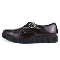 Go back to basics with this pair of classic burgundy vegan leather monk buckle pointed creepers by T.U.K. A cult classic that will always look sharp. Features a rich burgundy upper that gives these creepers a sleek vintage look.