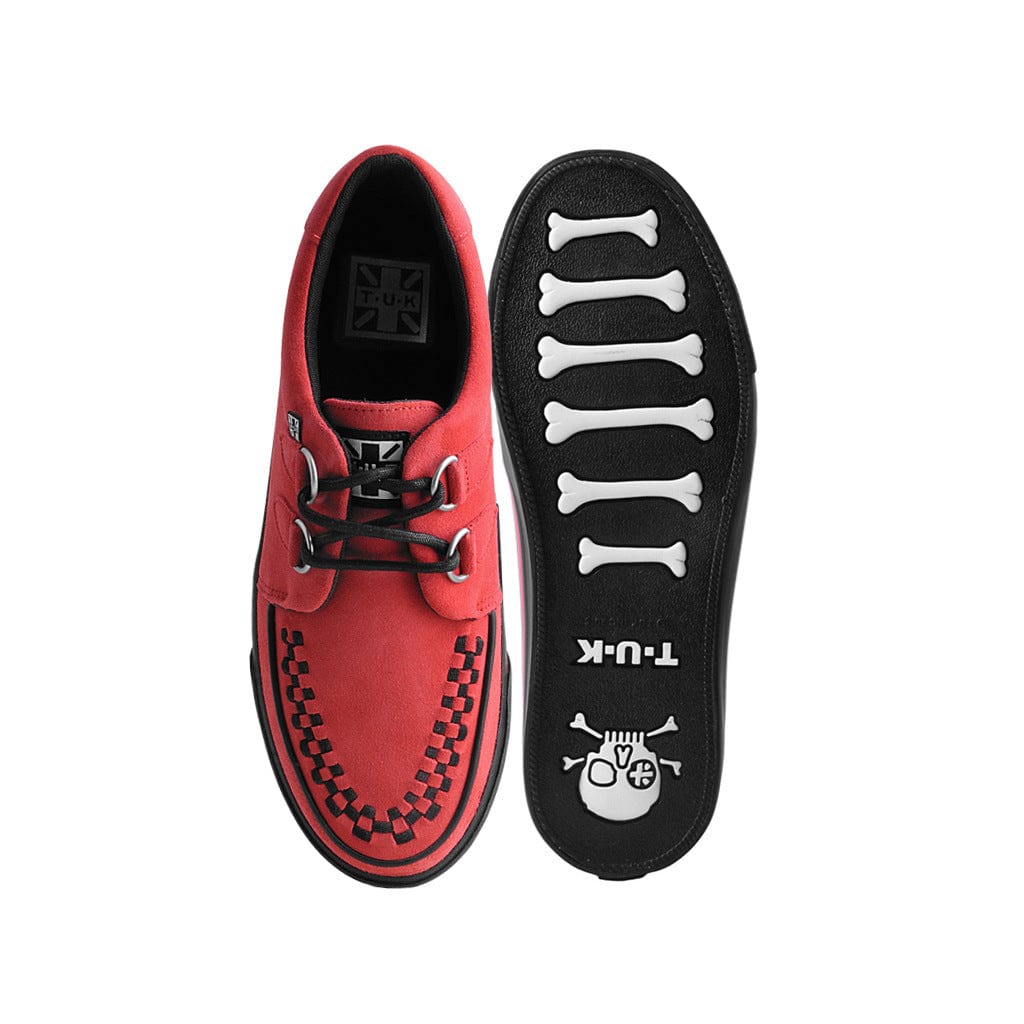 Our creeper sneaker in red suede is the ultimate T.U.K staple. Featuring memory foam insoles these versatile creepers have been constructed for everyday wear and durability. Wear it on its own for the perfect everyday sneaker or style with your favourite T.U.K accessories.