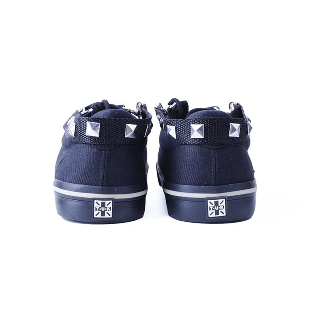 Give your kicks a little extra somethin’ with this black bondage shoe strap with silver pyramid studs embellishment throughout. These straps can be hooked onto any of our shoes with D-ring lace up such as our classic Black Suede Viva High Creeper, our Creeper Sneakers, & many more! Comes in a pair of two.